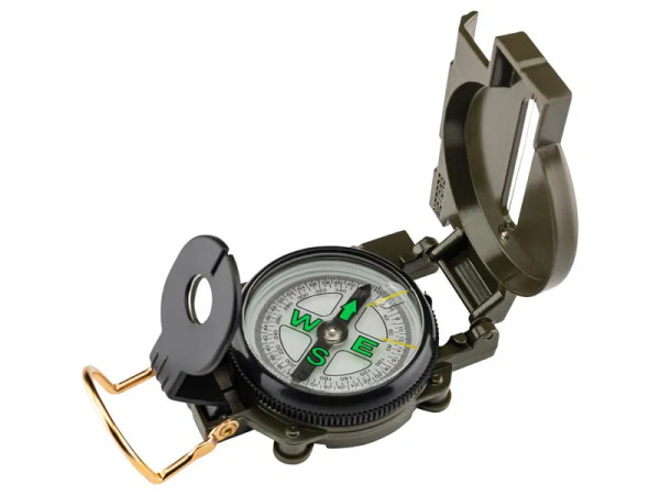 Der CJH Ranger-Kompass mit Flüssigkeitsdämpfung liegt in einem stabilen Metallgehäuse. Die Ausstattung umfasst Anlegekante mit Maßstabeinteilung 1:25.000.